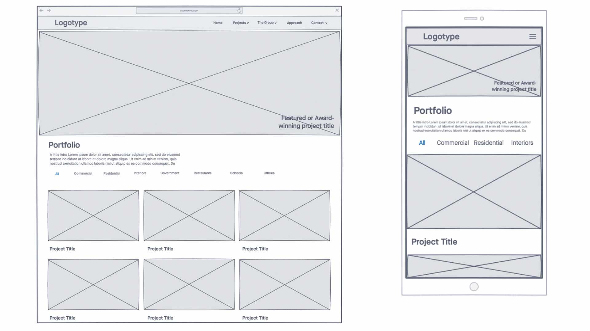 Finally, we had the privilege of speaking with Court Atkins Group’s clients to hear about their experience with the firm, what they look for in an architectural partner, and what would be most helpful information for them on the website. In a word, they’re looking for experience. And we knew from analytics that the site’s gallery of work was the most visited page – above even the home page, so we knew highlighting their portfolio in a beautiful and user-friendly way was going to be of utmost importance in this project.